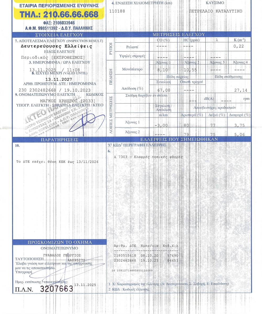 | Χιλιόμετρα: | 110000km |